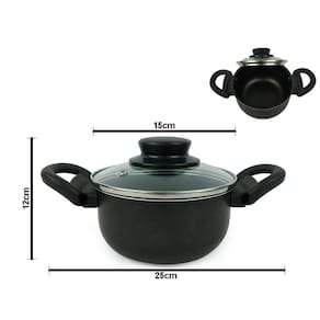 - Marca: Dona Chefa - Material: Alumínio teflon antiaderente - Material das tampas: Vidro temperado - Material Alças e Poméis: Baquelite - Cor: Preto - Formato: Circular - Revestimento: 5 camadas antiaderente - Possui tampa com saída de vapor: Sim - Pode ir a máquina de lavar louça: Sim - Pode ir ao micro-ondas: Não