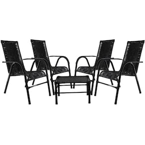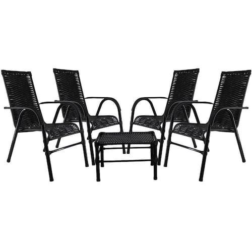 Conjunto Com 4 Cadeiras E Mesa De Centro Bela, Para área, Edícula, Fibra Sintética Preta