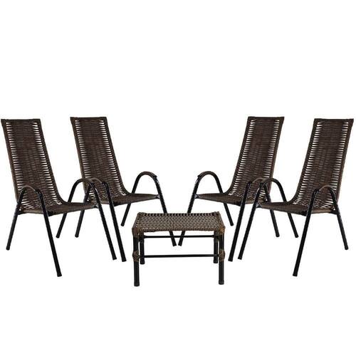Conjunto Com 4 Cadeiras E Mesa De Centro Canadá, Artesanal, Para área, Varanda, Edícula, Em Fibra Sintética Argila