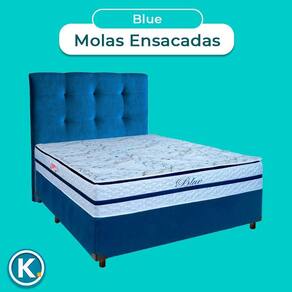 Conjunto Cama Box Azul Casal + Colchão Molas Ensacadas Blue Paropas + Cabeceira Conjunto Casal Colchão Blue + Cama Box Colchão Casal com 32cm de altura, oferecendo conforto elevado e presença imponente