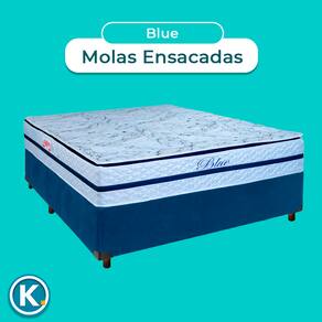 Conjunto Cama Box Azul Casal + Colchão Molas Ensacadas Blue Paropas