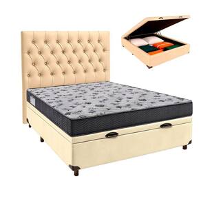 Conjunto Cama Box Bau Bege Casal + Colchão D33 Iso100 Ortobom + Cabeceira Conjunto Casal Colchão Iso100 + Cama Box Bau Colchão casal com 18cm de altura, ideal para conforto no dia a dia