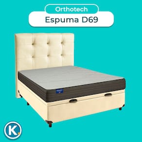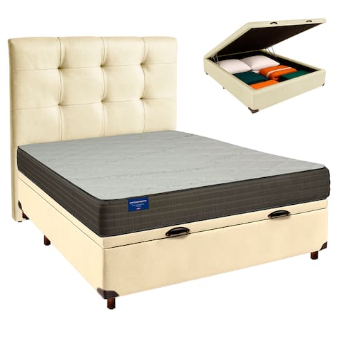 Conjunto Cama Box Bau Bege Casal + Colchão D33 Orthotech Inducol + Cabeceira