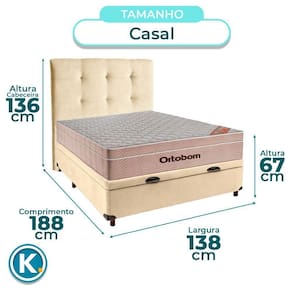 Modelo: Elite Marca: Nature Tamanho: Casal Tecido: Veludo Largura: 138cm Comprimento: 188cm Altura: 35cm Altura dos Pés: 7cm Material dos Pés: Madeira Suporte de Peso: 150Kg Peso: 35Kg Garantia: 3 Meses