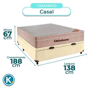 Conjunto Casal Colchão Airtech + Cama Box BauColchão Ortobom Casal com 25cm de altura, ideal para conforto no uso diárioTecido em poliéster que garante toque suave e boa ventilaçãoSuporte de até 120kg, ideal para diferentes biotipos com firmeza balanceadaBase baú Casal com 42cm de altura e amplo espaço interno para organizaçãoRevestimento em Material Sintético resistente, fácil de limpar e com visual modernoEstrutura reforçada com capacidade para até 150KgFicha Técnica Colchão:Modelo: AirtechMarca: OrtobomTamanho: CasalTecido: PoliésterLargura: 138cmComprimento: 188cmAltura: 25cmSuporte de Peso: 120KgGarantia: 3 MesesFicha Técnica Cama Box Bau:Modelo: EliteMarca: NatureTamanho: CasalTecido: Material Sintético Largura: 138cmComprimento: 188cmAltura: 35cmAltura dos Pés: 7cmMaterial dos Pés: MadeiraSuporte de Peso: 150KgPeso: 35KgGarantia: 3 MesesAtenção:Antes da compra certifique-se de que o produto passa por elevadores, portas e corredores.As transportadoras não realizam entregas por escadas ou içamentos.Caso o item não caiba no elevador, a entrega será considerada concluída no térreo do prédio.A cor e tonalidade do produto pode variar de acordo com o dispositivo que o usuário está acessando.