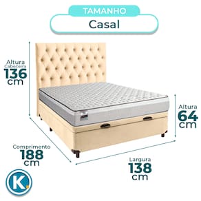 Conjunto Casal Colchão Hanover + Cama Box BauColchão Casal com 22cm de altura, ideal para conforto e praticidade no dia a diaRevestimento em Jacquard e Poliéster, unindo sofisticação e resistênciaSuporte de até 130kg, oferecendo firmeza e segurança para diferentes perfisBase baú casal com 42cm de altura e amplo espaço interno para organizaçãoRevestimento em Veludo , fácil de limpar e com visual modernoEstrutura reforçada com capacidade para até 150KgFicha Técnica Colchão:Modelo: HanoverMarca: InducolTamanho: CasalTecido: Jacquard/PoliésterLargura: 138cmComprimento: 188cmAltura: 22cmSuporte de Peso: 130KgGarantia: 3 MesesFicha Técnica Cama Box Bau:Modelo: EliteMarca: NatureTamanho: CasalTecido: VeludoLargura: 138cmComprimento: 188cmAltura: 35cmAltura dos Pés: 7cmMaterial dos Pés: MadeiraSuporte de Peso: 150KgPeso: 35KgGarantia: 3 MesesAtenção:Antes da compra certifique-se de que o produto passa por elevadores, portas e corredores.As transportadoras não realizam entregas por escadas ou içamentos.Caso o item não caiba no elevador, a entrega será considerada concluída no térreo do prédio.A cor e tonalidade do produto pode variar de acordo com o dispositivo que o usuário está acessando.
