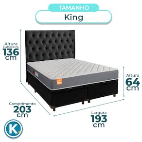 Conjunto King Colchão Pro + Cama Box BauColchão King com 22cm de altura, perfeito para conforto e suporte no dia a diaRevestimento em malha e poliéster, combinando maciez, resistência e boa ventilaçãoSuporta até 150kg, ideal para diferentes perfis com excelente durabilidadeBase baú King com 42cm de altura e amplo espaço interno para organizaçãoRevestimento em Veludo , fácil de limpar e com visual modernoEstrutura reforçada com capacidade para até 150KgFicha Técnica Colchão:Modelo: ProMarca: InducolTamanho: KingTecido: Malha/PoliésterLargura: 193cmComprimento: 203cmAltura: 22cmSuporte de Peso: 150KgGarantia: 3 MesesFicha Técnica Cama Box Bau:Modelo: EliteMarca: NatureTamanho: KingTecido: VeludoLargura: 193cmComprimento: 203cmAltura: 35cmAltura dos Pés: 7cmMaterial dos Pés: MadeiraSuporte de Peso: 150KgPeso: 50KgGarantia: 3 MesesAtenção:Antes da compra certifique-se de que o produto passa por elevadores, portas e corredores.As transportadoras não realizam entregas por escadas ou içamentos.Caso o item não caiba no elevador, a entrega será considerada concluída no térreo do prédio.A cor e tonalidade do produto pode variar de acordo com o dispositivo que o usuário está acessando.