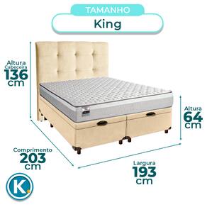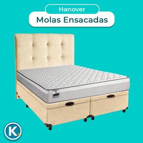 Conjunto Cama Box Bau Blindado King + Colchão Molas Ensacadas Hanover Inducol + Cabeceira - Nature | Off White | Gengibre