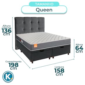 Conjunto Queen Colchão Pro + Cama Box BauColchão Queen com 22cm de altura, perfeito para conforto e suporte no dia a diaRevestimento em malha e poliéster, combinando maciez, resistência e boa ventilaçãoSuporta até 150kg, ideal para diferentes perfis com excelente durabilidadeBase baú Queen com 42cm de altura e amplo espaço interno para organizaçãoRevestimento em Veludo , fácil de limpar e com visual modernoEstrutura reforçada com capacidade para até 150KgFicha Técnica Colchão:Modelo: ProMarca: InducolTamanho: QueenTecido: Malha/PoliésterLargura: 158cmComprimento: 198cmAltura: 22cmSuporte de Peso: 150KgGarantia: 3 MesesFicha Técnica Cama Box Bau:Modelo: EliteMarca: NatureTamanho: QueenTecido: VeludoLargura: 158cmComprimento: 198cmAltura: 35cmAltura dos Pés: 7cmMaterial dos Pés: MadeiraSuporte de Peso: 150KgPeso: 40KgGarantia: 3 MesesAtenção:Antes da compra certifique-se de que o produto passa por elevadores, portas e corredores.As transportadoras não realizam entregas por escadas ou içamentos.Caso o item não caiba no elevador, a entrega será considerada concluída no térreo do prédio.A cor e tonalidade do produto pode variar de acordo com o dispositivo que o usuário está acessando.