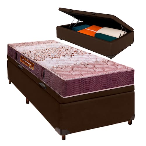 Conjunto Cama Box Bau Blindado Solteiro + Colchão D26 Ortophedic Sankonfort - Marrom