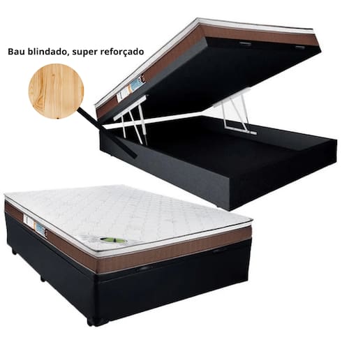 Madeira tratada (baú); Tecido Sintético (revestimento baú); Tecido Malha de Alta Qualidade (colchão).Vendido e entregue por COLCHOES E MOVEIS MONTES MATOS