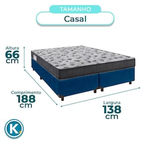 Modelo: Elite BiPartido Marca: Nature Tamanho: Casal Tecido: Veludo Largura: 138cm Comprimento: 188cm Altura: 35cm Altura dos Pés: 13cm Material dos Pés: Madeira Suporte de Peso: 150Kg Peso: 27Kg Garantia: 3 Meses