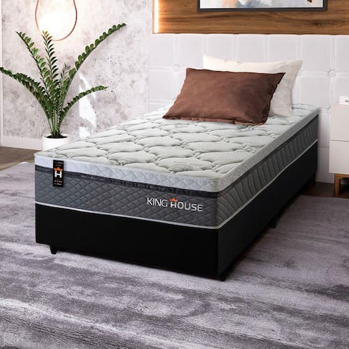 Feito com os mais nobres materiais em sua composição, ele conta com espuma D28 e molas ensacadas. Por ser mais macio, o colchão de molas ensacadas individualmente traz benefícios e ajuda no alinhamento da coluna. O colchão King House acomoda melhor o contorno do corpo, dispondo de forma correta quadris e ombros, expulsando as dores e problemas de coluna.