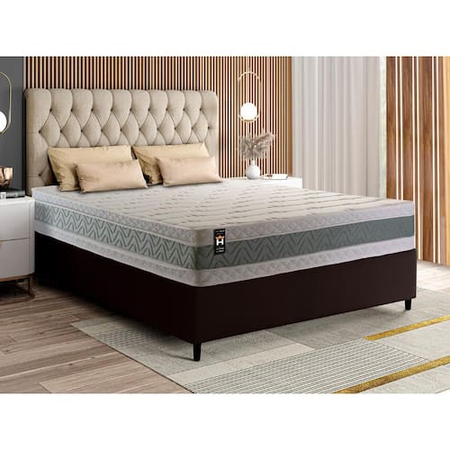 Feito com os mais nobres materiais em sua composição, ele conta com espuma D33 . O colchão King House acomoda melhor o contorno do corpo, dispondo de forma correta quadris e ombros, expulsando as dores e problemas de coluna.