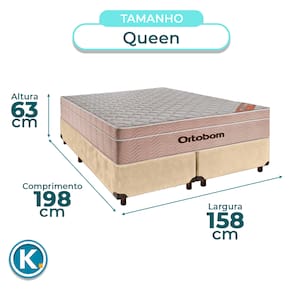 Conjunto Queen Colchão Airtech + Cama BoxColchão Ortobom Queen com 25cm de altura, ideal para conforto no uso diárioTecido em poliéster que garante toque suave e boa ventilaçãoSuporte de até 120kg, ideal para diferentes biotipos com firmeza balanceadaBase Box Queen Universal em VeludoMedidas Queen: 158x198cm, ideal para colchões maiores e mais espaçososEstrutura reforçada com suporte de até 150kg, garantindo segurança e durabilidadeFicha Técnica Colchão:Modelo: AirtechMarca: OrtobomTamanho: QueenTecido: PoliésterLargura: 158cmComprimento: 198cmAltura: 25cmSuporte de Peso: 120KgGarantia: 3 MesesFicha Técnica Cama Box:Modelo: UniversalMarca: NatureTamanho: QueenTecido: VeludoLargura: 158cmComprimento: 198cmAltura: 25cmAltura dos Pés: 13cmMaterial dos Pés: MadeiraSuporte de Peso: 150KgPeso: 30KgGarantia: 3 MesesAtenção:Antes da compra certifique-se de que o produto passa por elevadores, portas e corredores.As transportadoras não realizam entregas por escadas ou içamentos.Caso o item não caiba no elevador, a entrega será considerada concluída no térreo do prédio.A cor e tonalidade do produto pode variar de acordo com o dispositivo que o usuário está acessando.