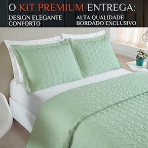 Conjunto Cama Casal King Size Agata Bordada 200 Fios Super Elegante COR: VERDE Conjunto Cama Casal King Size Agata Bordada 200 Fios Super Elegante