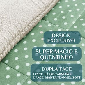 Composição: Face 1 coberta de Microfibra Soft Face 2 coberta de lã de Carneiro Enchimento manta 100% poliéster