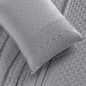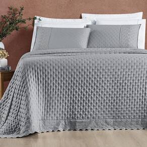 Conjunto Cama Casal Queen Size Bordado Inglês London 200 Fios Cinza