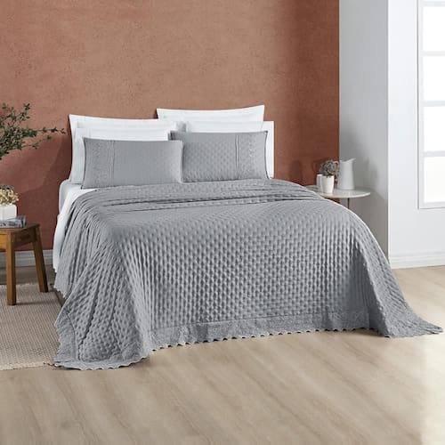 Conjunto Cama Casal Queen Size Bordado Inglês London 200 Fios Cinza