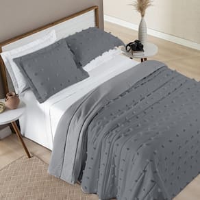 O destaque deste conjunto está na sua alta qualidade de tecido. Com 300 fios, a colcha é confeccionada em micro percal 100% poliéster, proporcionando um toque suave e macio à pele. Além disso, sua composição é respirável, o que garante uma temperatura agradável durante todas as estações do ano.