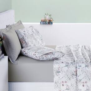 Conjunto Cama King Size Selin Lençol Estampado 100% Algodao Extra Macio COTTON COR: CINZA Dê um toque de classe ao seu quarto com o Conjunto Selin - estampas modernas e maciez sem igual