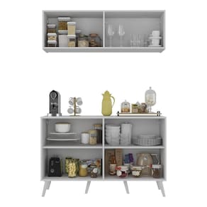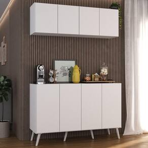 Receba seus convidados com estilo e sofisticação com o Conjunto Cantinho do Café Retrô Armário e Aparador 4 portas Multimóveis MP1084. Fabricado em MDP (15mm) com acabamento acetinado (cerca de 20% de brilho), garante durabilidade e resistência. Composto por um aparador e um armário aéreo com 4 portas e prateleiras, ele proporciona amplo espaço interno para organizar todos os itens necessários para a deliciosa hora do cafezinho. Seu design clean confere um visual moderno, combinando com qualquer tipo de decoração. Além disso, o aparador possui pés retrô em polipropileno que oferecem estabilidade e um charme vintage.