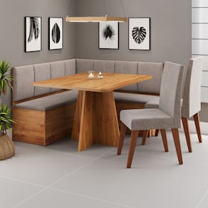 - Material da Estrutura: Mdp, Mdf, Eucalipto - Espessura da Estrutura: 18 mm, 25 mm, 50 mm - Possui Gavetas?: Não - Possui Portas?: Não - Possui Espelho?: Não - Possui Prateleiras?: Não - Possui Puxadores?: Não - Linha ou Coleção: Casa Giulia - Escala de Brilho: Semi-Brilho - Possui Tampo?: Sim - Material do Tampo: MDF - Espessura do Tampo (mm): 18 mm - Possui Rodízios?: Não - Possui Sapatas?: Sim - Quantidade de Sapatas: 26 - Possui Pés?: Sim - Quantidade de Pés: 8 - Pés com regulagem de altura?: Não - Possui Borda de PVC nas Bordas?: Não - Grau de Dificuldade de Montagem: Médio - Necessita de Montagem: Sim - Sistema de Montagem: Parafusos, cavilhas, cola e minifix. - Pode Ser Montado Invertido?: Não - Como os Móveis Chegarão em Minha Casa?: Desmontado em caixas, acompanhado de todas as peças, ferragens e manuais para montagem. - Acompanha: manual de montagem e kit ferragem - Categoria: Canto Alemão - Indicação de Uso: Sala de Jantar - Garantia (dias): 90 Dias - Observação: Objetos decorativos que aparecem nas imagens, não acompanham o produto. - Recomendação de Manutenção: Utilizar pano levemente umedecido, seguido de pano seco. Não utilizar quaisquer produtos abrasivos. - Revestimento/Acabamento: Verniz, Pintura UV, Linho