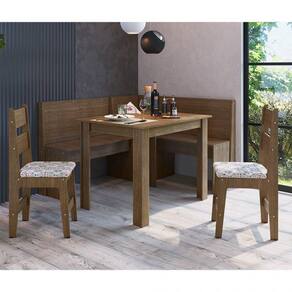 Conjunto canto alemão na cor ameixa negra em estilo rústico, com 2 cadeiras em MDF estampadas Lilies Móveis