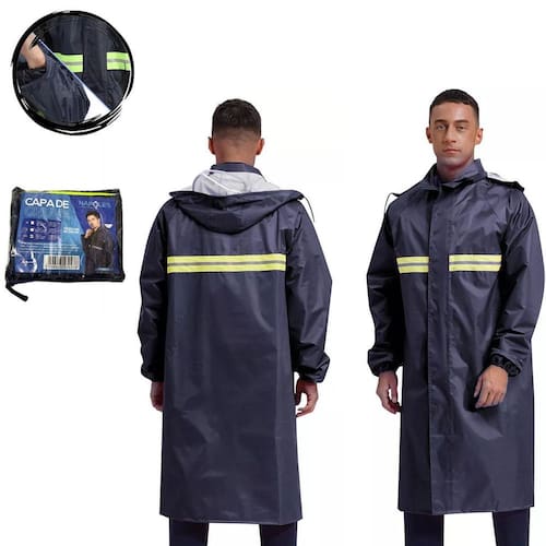 Impermeável: protege contra chuva intensa. Confortável: forro interno macio e ajuste perfeito. Visibilidade: refletivos para maior segurança no trânsito. Durabilidade: material resistente e costuras reforçadas.