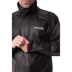 CARACTERÍSTICAS: - Conjunto de jaqueta e calça 100% impermeáveis - Jaqueta com gola e refletivos - Fechamento frontal com lapela de vedação extra - Calça com elástico de ajuste na cintura - Mangas com regulagem (ajustes) nos punhos - Ajuste com tiras de contato (fitas autocolantes) na bainha da calça