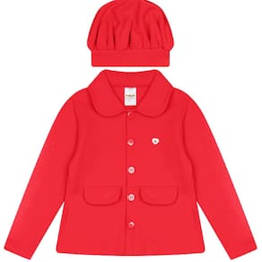 Conjunto infantil composto por casaco e gorro, ideal para manter a criança aquecida nos dias frios. O casaco possui mangas longas, gola delicada, fechamento frontal por botões e bolsos funcionais, garantindo conforto e praticidade. O gorro complementa o visual, oferecendo proteção extra contra o frio. Modelo confortável e elegante, perfeito para passeios, eventos e uso diário no inverno.