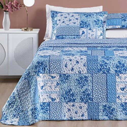 Contém: 01 Cobre Leito 2,80m X 2,60m 02 Portas Travesseiros 70cm x 50cm
