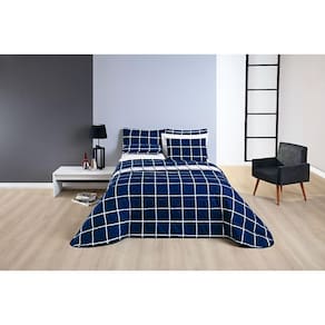 Conjunto Casal Queen Size Xadrez 03 Peças 200 Fios Super - Azul