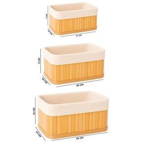 Conjunto de Cesto Organizadores Kit Com 3 Tamanhos PMG de Bambu Forro Removível em Tecido Transforme a organização da sua casa com elegância e praticidade. Este kit com 3 cestos retangulares de bambu com forro removível é a escolha perfeita para quem valoriza ambientes bem organizados, bonitos e sustentáveis.