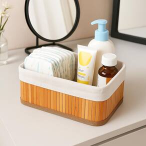Tamanhos variados P, M e G : se adaptam a diferentes usos e ambientes Design sofisticado em bambu natural: agrega um toque decorativo clean e moderno Forro de tecido removível e lavável: mais higiene e versatilidade no dia a dia Leves, empilháveis e resistentes: fáceis de guardar e transportar Multiuso: ideais para banheiros, closets, quartos infantis, penteadeiras, escritórios e mais