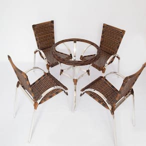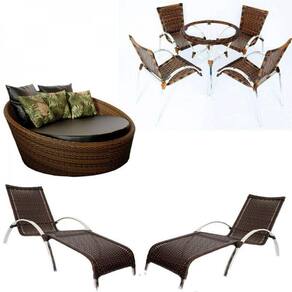 Conjunto Chaise, 4 Cadeiras, Mesa e 2 Espreguiçadeiras Em Alumínio Trama - Marrom Escuro