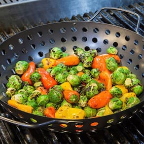 Já a panela wok para grelhar foi desenvolvida para facilitar e otimizar o preparo de alimentos como legumes e frutos do mar na churrasqueira de carvão, direto em brasa.