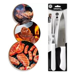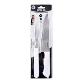Descrição: Faca: 7 polegadas resulta em 29,5 cm, composição aço inox. Guarfo trinchante: 5 polegadas resulta em 26 cm, composição aço inox. Ultilização: 1 faca versátil, ideal para cortar e fatiar carnes, peixes, frutas e legumes, além de picar cebola, alho e salsinha. 1 garfo trinchante, com dentes longos para facilitar sua inserção em pedaços maiores de carnes, é indicado para servir ou cortar carnes assadas. O garfo prende a carne na posição correta, proporcionando segurança e precisão ao corte e aos movimentos da faca. Cuidados Objeto cortante, utilize com cuidado. Mantenha fora do alcance de crianças. Para manter seu conjunto de churrasco sempre brilhando, lave as peças com esponja macia, sabão ou detergente neutro. Produtos abrasivos como palha de aço poderão riscar e prejudicar o brilho da peças. Seque imediatamente para evitar manchas. Recomenda-se o uso de água quente para melhor resultado. Não guarde em local úmido, a umidade pode provocar manchas. Marca: Não Informado
