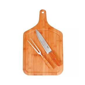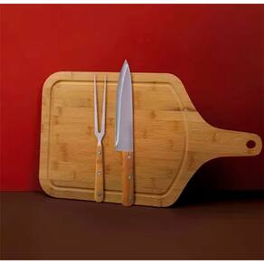 Para completar seu kit de acessórios para o final de semana, a Mor traz o conjunto Churrasco 3 peças Bamboo Tábua com Cabo. Ele é formado por uma tábua de bamboo de 30cm x 50cm com sulcos em suas bordas e um orifício no cabo para que você o pendure, mantendo-o sempre à mão. Conta com um garfo trinchante e uma faca com cabo em bambu e lâminas em aço inoxidável, ideais para o corte das mais diversas carnes. Além de ecologicamente correto, o bambu é um material extremamente resistente e durável. Você recebe esse conjunto em uma caixa própria para presentear aquele amigo que é um churrasqueiro de mão cheia Especificações: Material: Aço Inox, Bamboo Medidas: 01 Tábua - 50cm x 30cm x 1,5cm 01 Faca - 33cm x 4cm x 1,8cm 01 Garfo - 29cm x 2,7cm x 1,8cm Peso: 1,4kg Itens Inclusos: 01 Tabua 01 Garfo 01 Faca