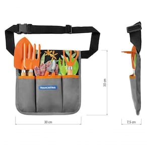 - O cinto é fabricado em poliéster e serve para carregar as ferramentas, oferecendo mais facilidade no cuidado das plantinhas;