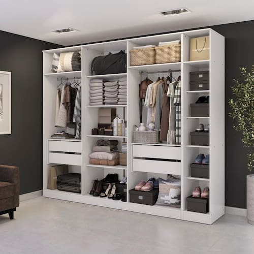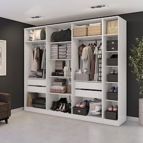 1x Guarda-Roupa Sem Portas Closet 4 Gavetas Kapperberg Adapt Branco 237cm;
