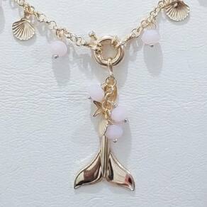 Conjunto Colar Brinco Concha Fundo Do Mar Estrela Sereia Ros