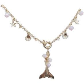 O Conjunto Colar Brinco Concha Fundo Do Mar Estrela Sereia Ros é uma joia semi-preciosa banhada em ouro 18k, perfeita para as mulheres que amam o tema do fundo do mar. Este conjunto inclui um colar e um par de brincos com pingentes em forma de concha, estrela do mar e sereia.