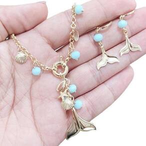 Conjunto Colar e Brinco Banhado Ouro 18k Fundo do Mar