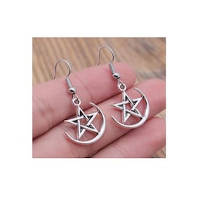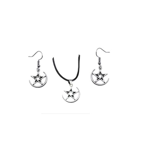 Conjunto Colar E Brinco Pentagrama Prateado Pequeno Delicado Cor: Prateado Meia lua Conjunto pentagrama colar e brinco.. Tamanho do pingente de pentagrama é 25x20 mm