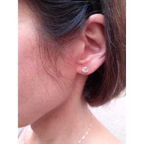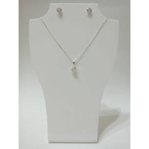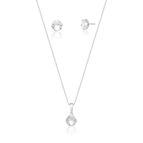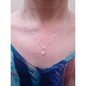 Conjunto brinco e corrente em malha veneziana com pingente ponto de luz zircônia redonda branca.