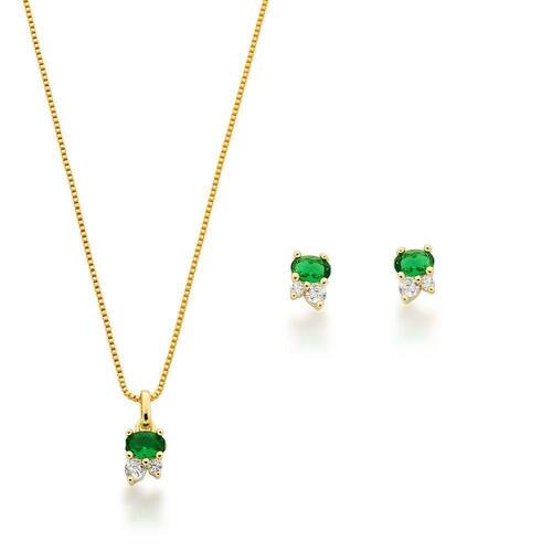 Conjunto Colar E Brincos Delicado Banhado A Ouro 18k Conjunto Colar e Brincos Delicado Banhado a Ouro 18k Verde - Este delicado conjunto composto por uma delicada Zirconia Oval colorida e duas zirconias cristais logo a baixo, dão um charme e brilho a seu Look. òtima opção para presentear uma pessoal especial.
