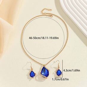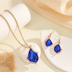 Compre Agora Conjunto Colar e Brincos Pedras Strass Luxo Tendência Azul e brilhe com estilo e elegância em todas as ocasiões especiais!