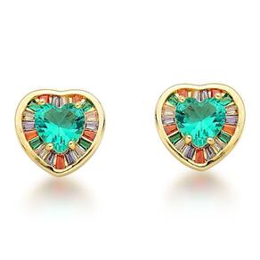 Conjunto Colar e Brincos Coração cravejado Banhado a Ouro 18k