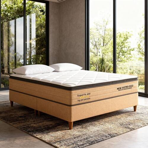 .Camada estrutural em EPS Produto Montado: Não Abertura para Ventilação: Não Acompanha Cama Auxiliar: Não Acompanha Colchão: Sim Altura da Base Box (Sem o Colchão): 42 cm Altura do Colchão (Sem a Base Box): 32 cm Altura Máxima dos Pés: 12.0000 Ambiente Principal: Quarto Antiácaro: Sim Antialérgico: Sim Antifungo: Sim Bicama: Não Cantoneiras: Sim codigo_ean: 7900288280114 Conjugado: Não Cor: Laranja/Branco Cor do Produto: Laranja/Branco Espessura da Mola: 2 mm Informações Complementares: Girar o produto a cada 30 dias Itens Inclusos: 2 Bases Box e 1 Colchão Linha ou Coleção: New Astro/Luxo Manual de Montagem e Instalação: https://product-hub-prd.madeiramadeira.com.br/805215680/documents/cc204393-7ad1-4b22-897f-41d70b680bb03306538667317619159122318.pdf Marca: Móveis Bom Pastor Material da Estrutura: Eucalipto Material dos Pés: Plástico Molas por m²: 174 Necessita Montagem: Não Nível de Conforto: Firme Origem do Produto: Nacional Peso: 74 kg Pillow: Pillow Top Possui Baú: Não Possui Pillow: Sim Precisa virar: Sim Recomendações de Uso, Manutenção e Limpeza: Não usar produto químico, limpar com apenas pano limpo úmido. Revestimento da Base Box: Veludo Tamanho: Queen Tamanho de Colchão: Queen Tipo de Cama Box: Base Box Tipo do Colchão: Mola